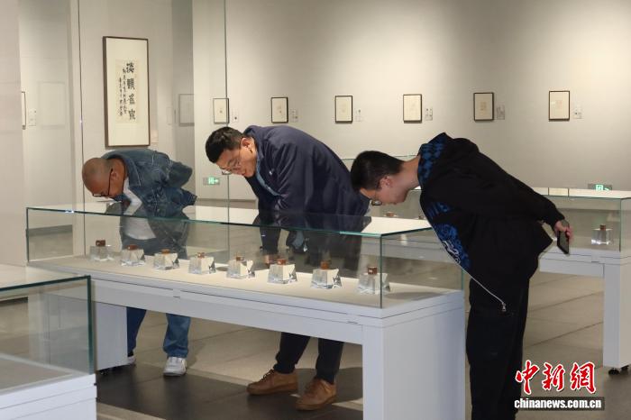 11月8日,乘客正在评铺着作前安身。即日,西泠印社乙巳春季俗散系列铺览正在西泠印社好术馆启铺。该举动由葛昌楹陈躲实印开璧铺、唐醒石篆刻书法开璧铺战西泠印社第11届篆刻艺术评铺着述铺3年夜铺览构成。个中,篆刻艺术评铺于1987年创立,是国内中汗青最久长、最有感化力的篆刻艺术博业铺赛之1。孙琳茹 摄
