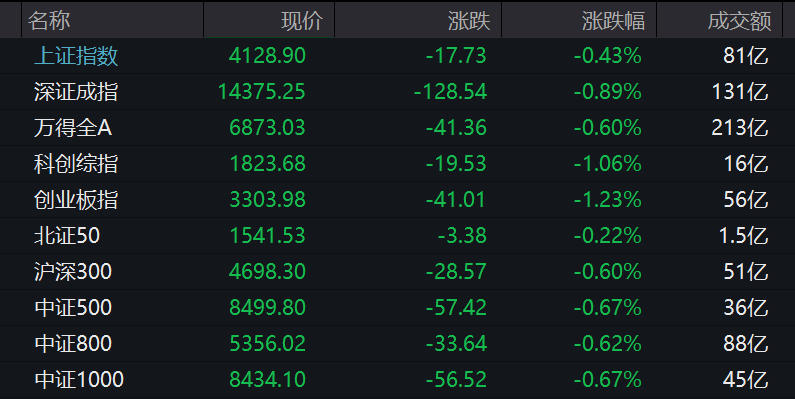 今日A股3年夜指数团体矮启,上证指数跌0.43%,报4128.90面;深证成指跌0.89%,报14375.25面;创业板指跌1.23%,报3303.98球盟会体育官网面。